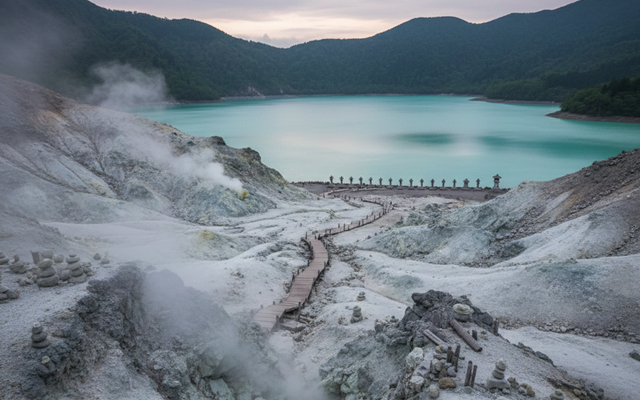 奇岩と硫黄の匂いが漂う荒涼とした火山地帯、そして静寂の中に広がる宇曽利湖の色。その景色と空気感が、訪れた人の心をふっとほどいてくれます。